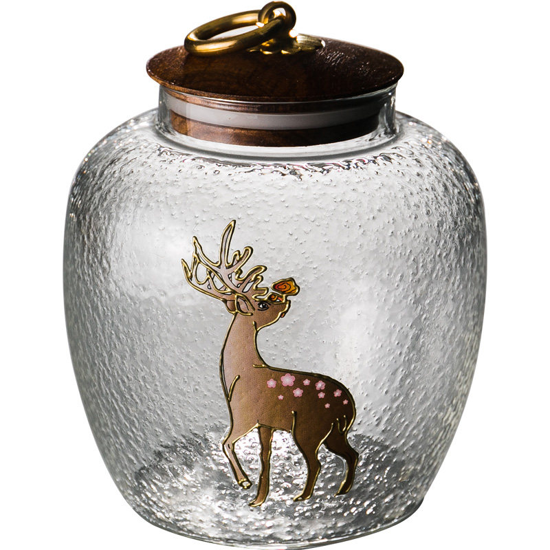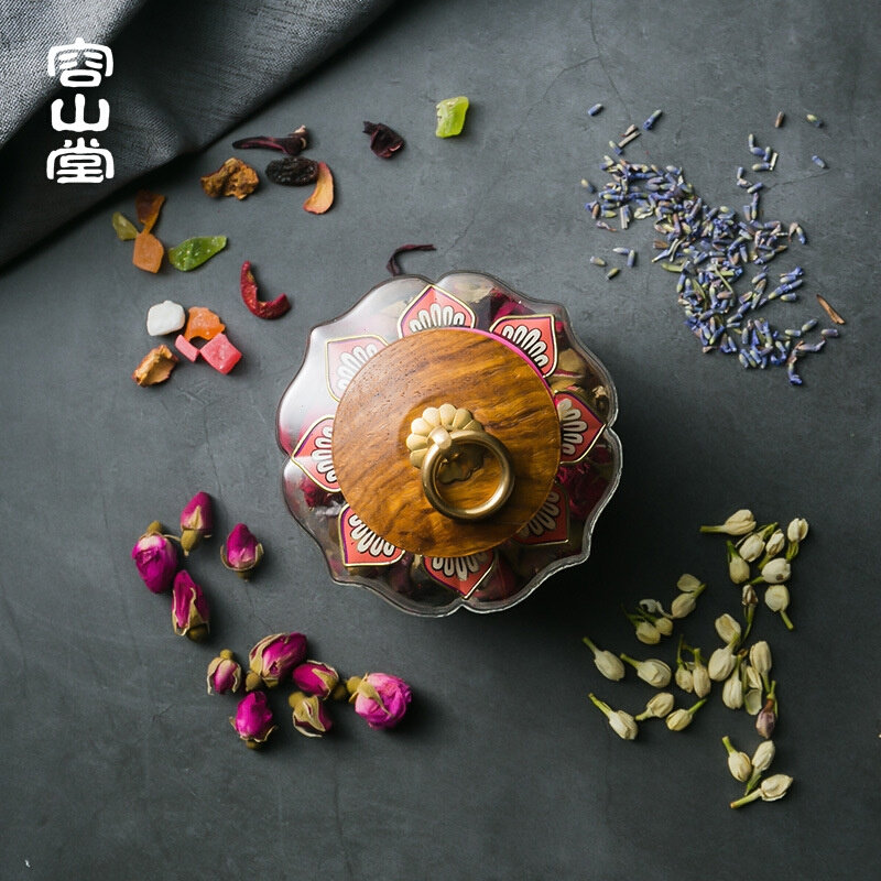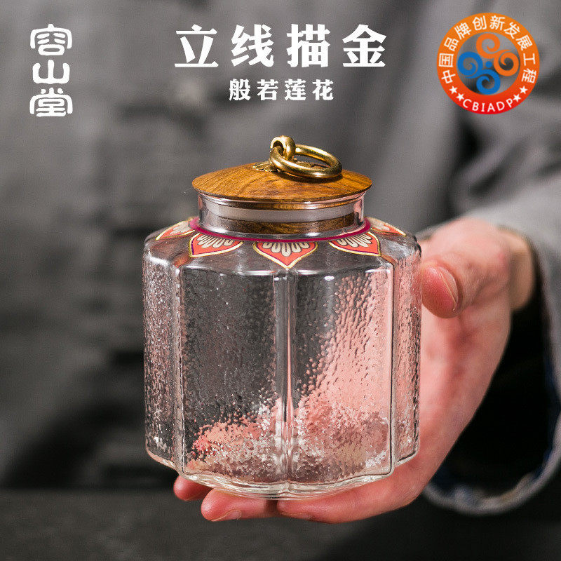 极速容山堂玻璃茶叶罐莲花禅意密封储物存茶罐实木盖普洱白红茶具