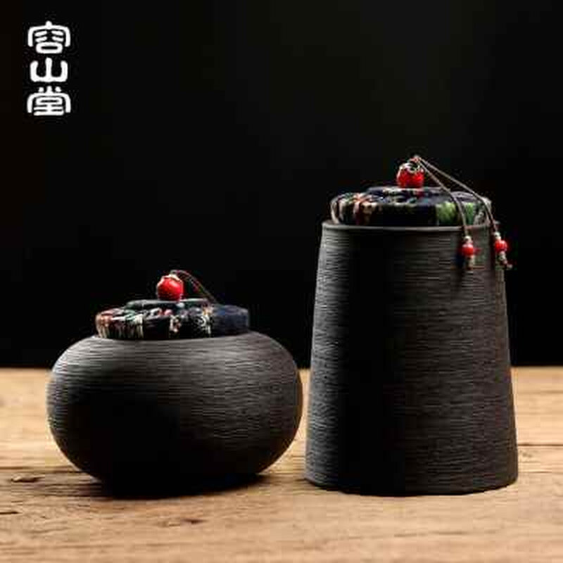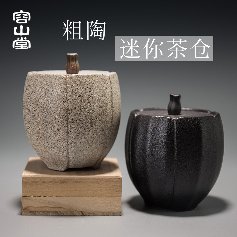 容山堂道本 陶瓷茶叶罐 粗陶小号便携储物罐普洱密封罐 迷你茶仓