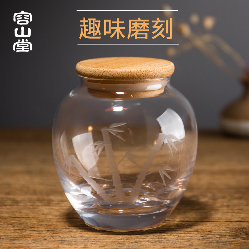 容山堂御品玻璃茶叶罐木制塞密封罐透明大小号迷你竹盖储物罐便携