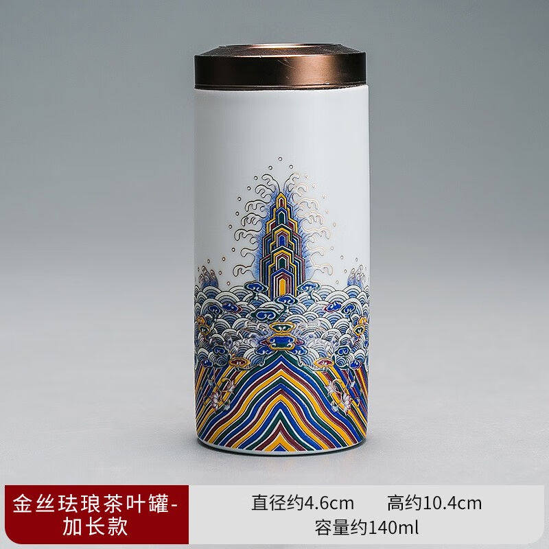 容山堂珐琅彩陶瓷茶叶罐密封罐家用储物罐旅行迷你便携茶仓金丝珐
