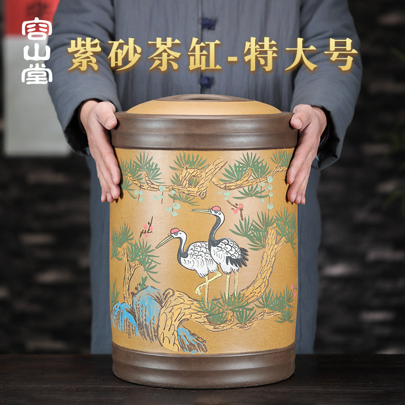 容山堂宜兴紫砂茶叶罐特大号普洱茶饼收纳罐家用大容量密封储存罐