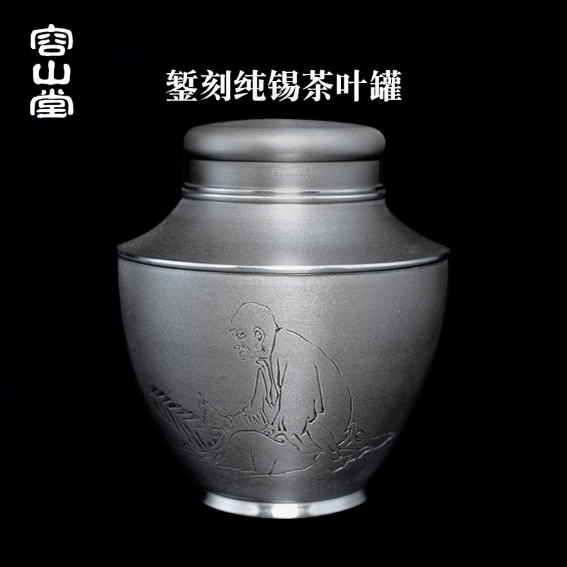 容山堂茗趣纯锡茶叶罐老白茶密封储存罐便携金属茶叶收纳锡罐茶仓