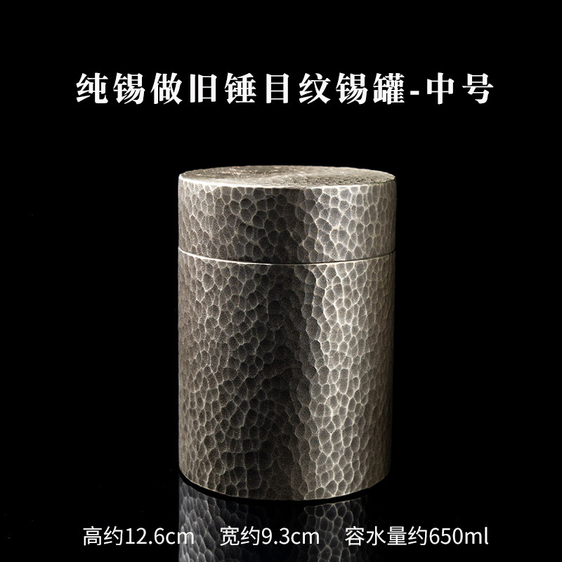 容山堂茗皓锡茶叶罐锤目纹密封罐防潮储茶锡罐旅行便携锡茶仓