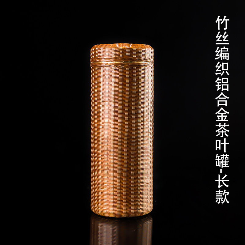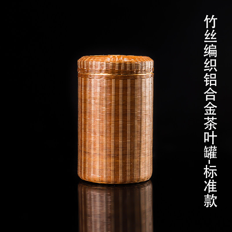 容山堂手工竹丝编织茶叶罐铝合金散茶罐醒茶密封罐竹丝扣瓷便携罐