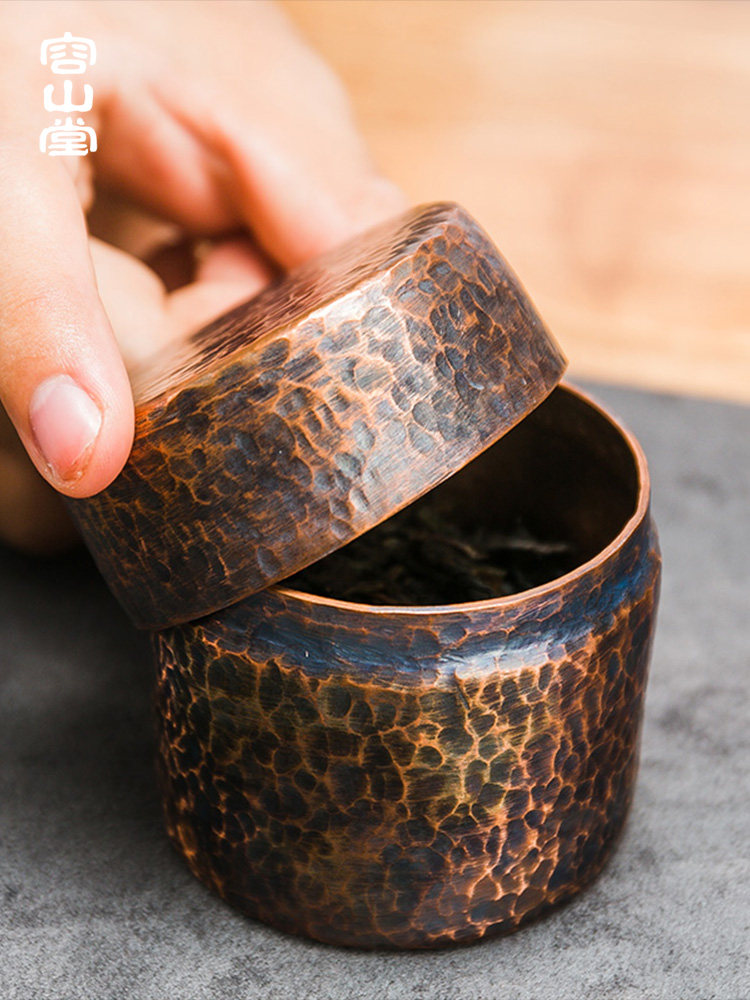 容山堂 手工紫铜茶叶罐 迷你小号普洱密封罐储物罐醒茶罐便携茶仓