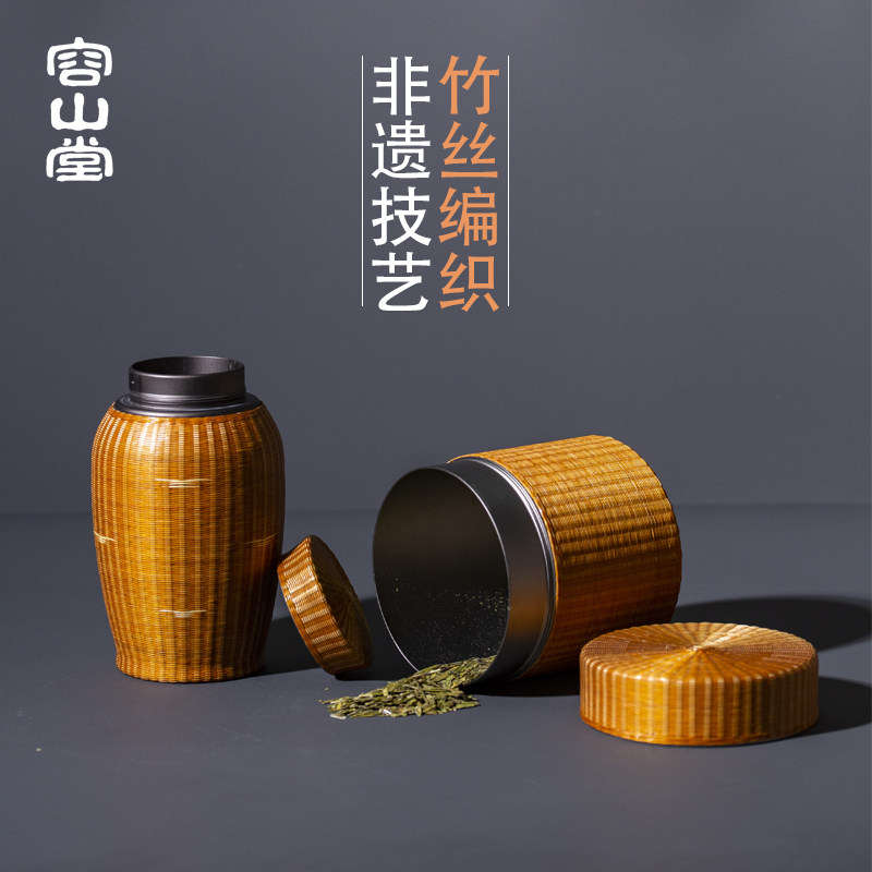 容山堂竹编茶叶罐金属竹丝扣瓷便携旅行密封罐铁观音功夫茶具配件