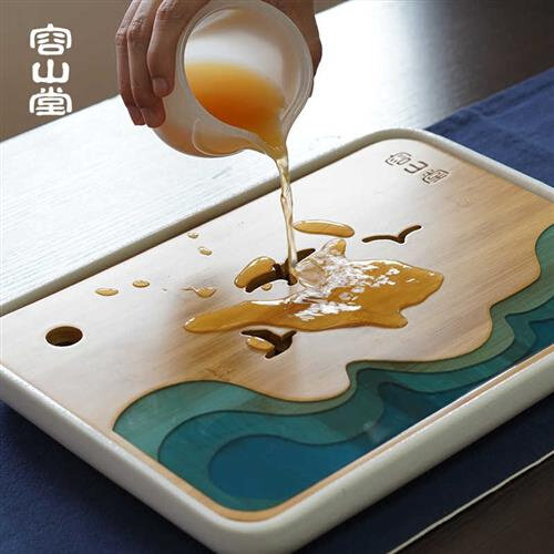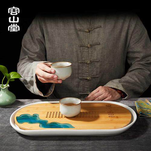 容山堂竹制小茶盘储水式干泡台陶瓷树脂实木托盘茶席功夫茶具