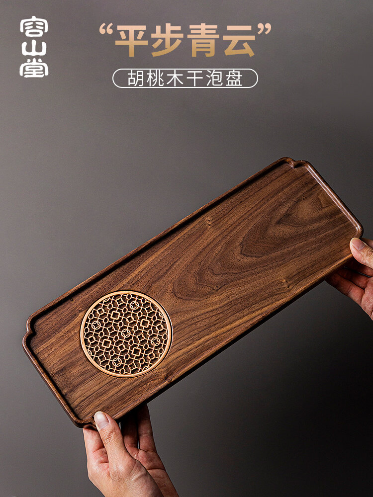 容山堂胡桃木干泡盘实木长方形茶盘简约木制茶点盘家用托盘茶台