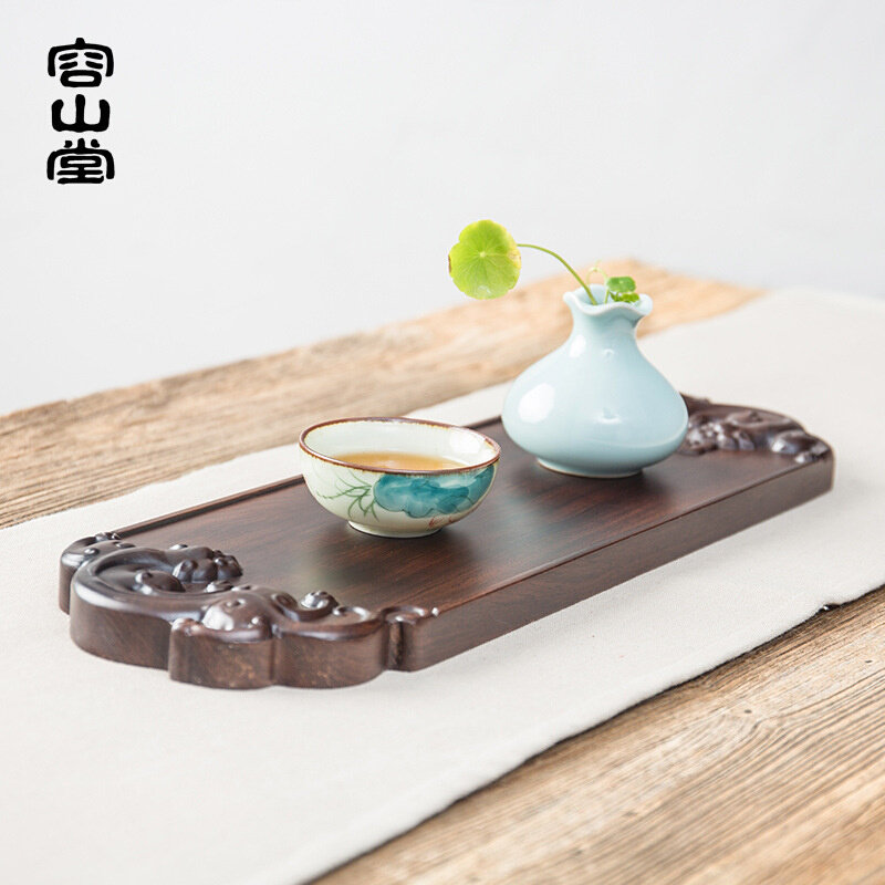 定制容山堂整块实木茶盘黑檀木小茶台家用小型干泡台茶托盘木质托