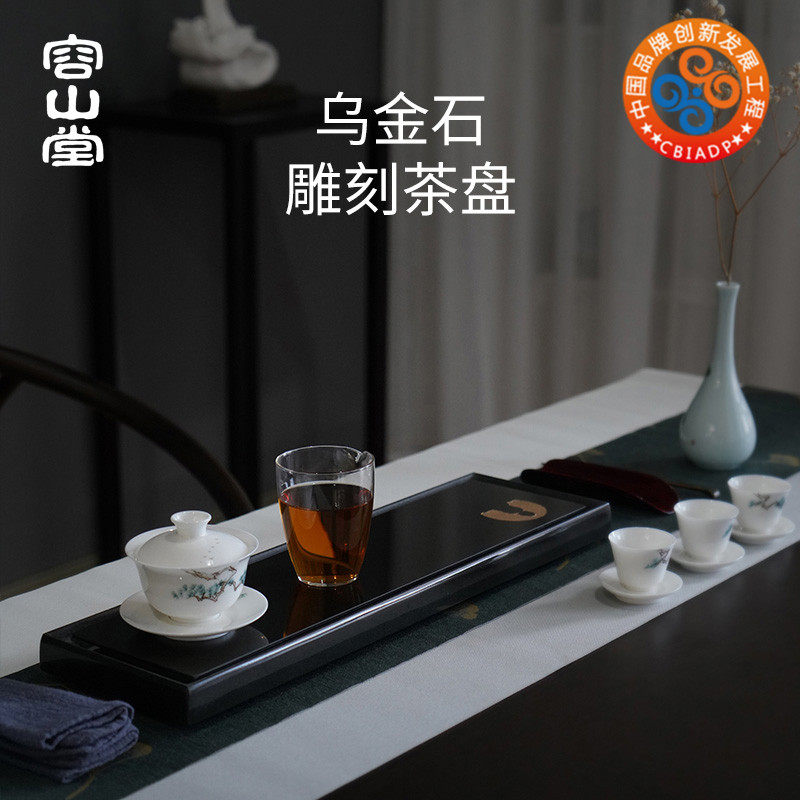 容山堂吟鸟 乌金石雕刻茶盘 大小号干泡台家用简约排水式托盘茶海