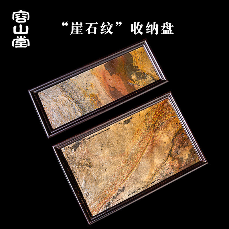 容山堂复古重竹茶盘干泡台仿崖石纹家用简约茶具桌面收纳整理托盘