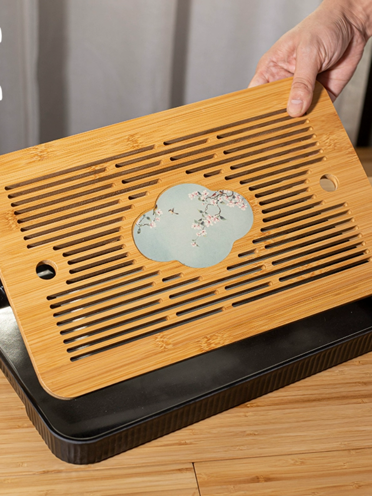 容山堂竹艺密胺储水茶盘竹制干泡台大号排水托盘壶承功夫茶盘配件