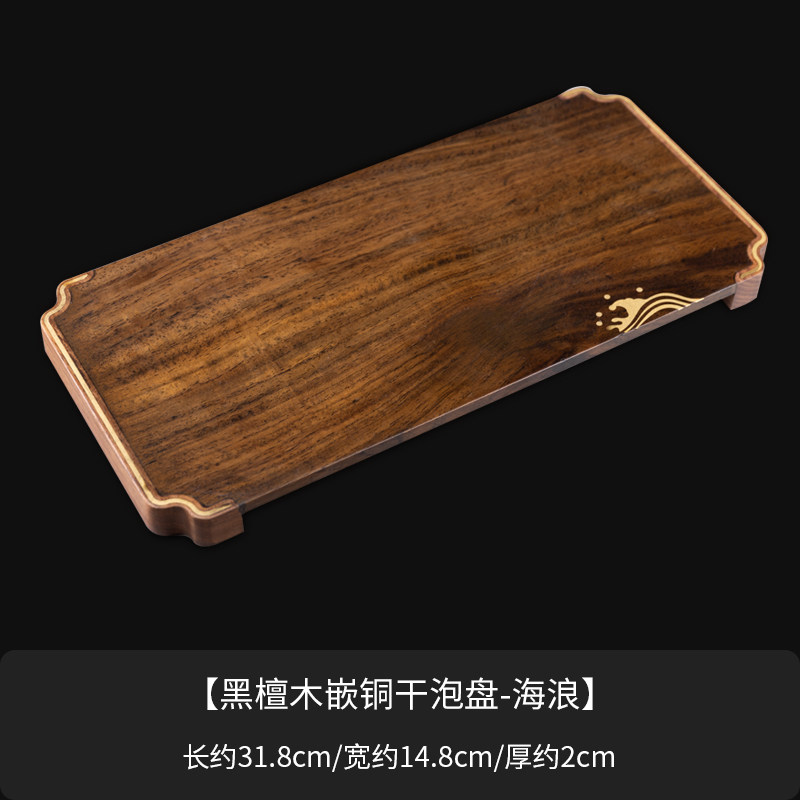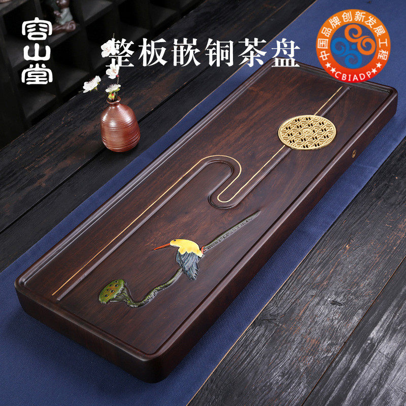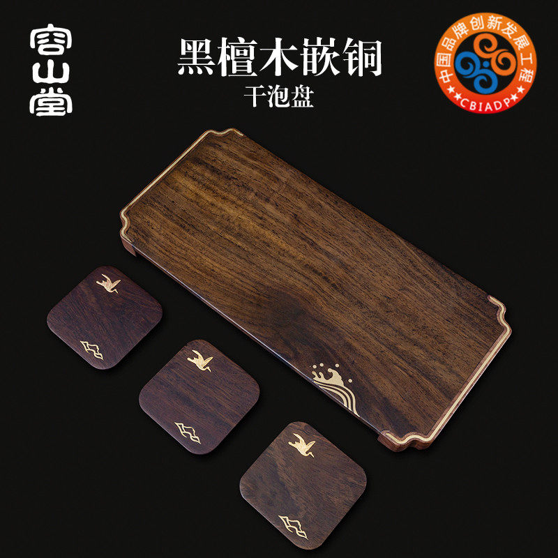 定制容山堂黑檀木干泡台小茶盘简约家用壶承嵌铜实木托盘功夫茶具
