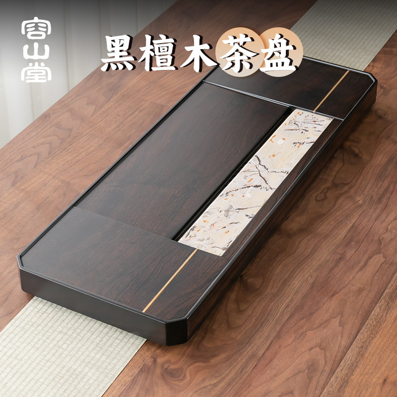 容山堂茗绣黑檀木实木茶盘家用沥水茶托盘功夫茶具茶托干泡茶台