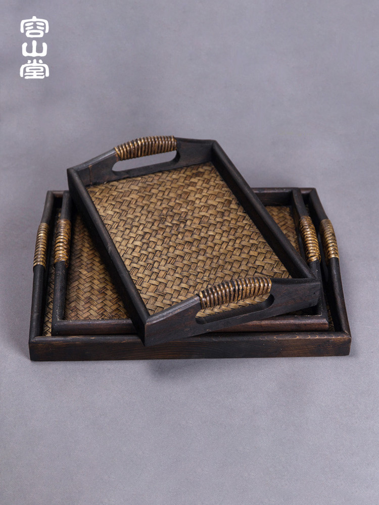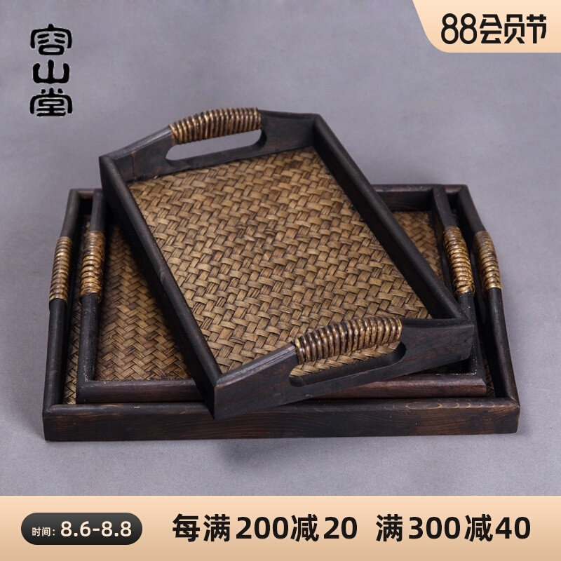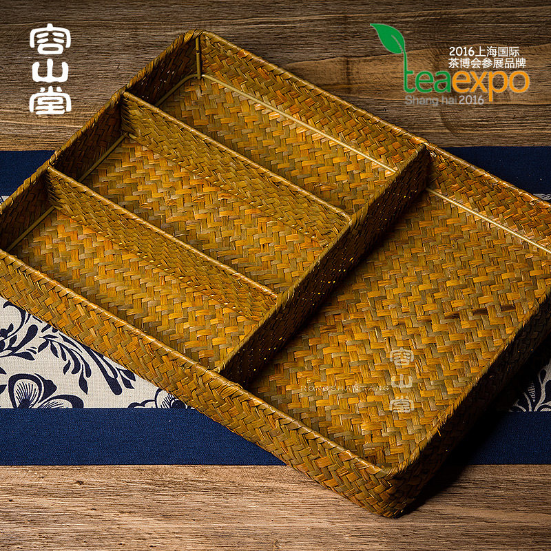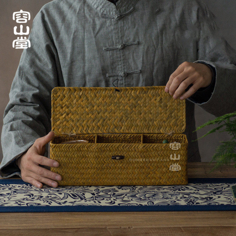 容山堂 藤草编收纳盒茶具架茶杯架茶壶架茶叶罐收纳盒草制托盘