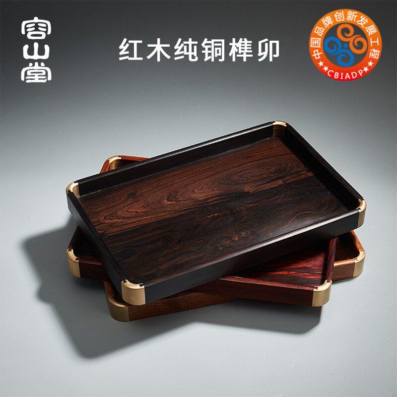 容山堂紫光檀实木镶嵌铜角实木长方形托盘大小号家用功夫茶具茶盘