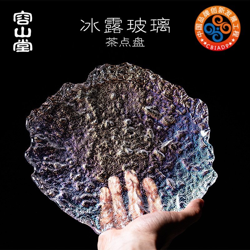 容山堂冰露玻璃水果盘客厅家用专用茶点心盘中式禅意餐具大号托盘