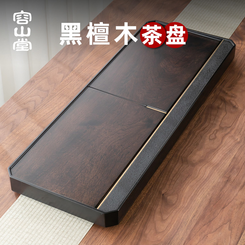 容山堂茗绣黑檀木实木茶盘茶海家用客厅沥水茶托盘功夫茶具茶台
