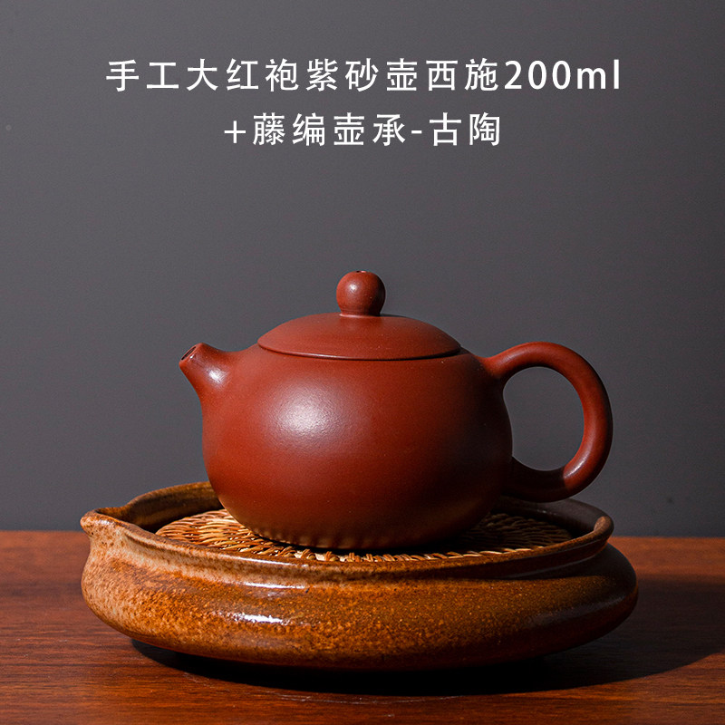 定制容山堂壶承干泡台手工藤编紫砂托盘粗陶茶盘干泡盘迷你储水式