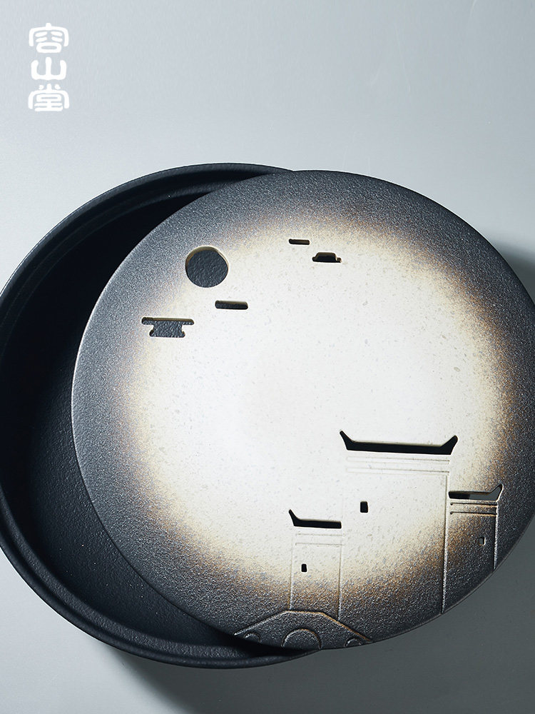 容山堂茗绣国画石壶承天然石茶盘家用小号托盘圆形干泡台壶垫配件