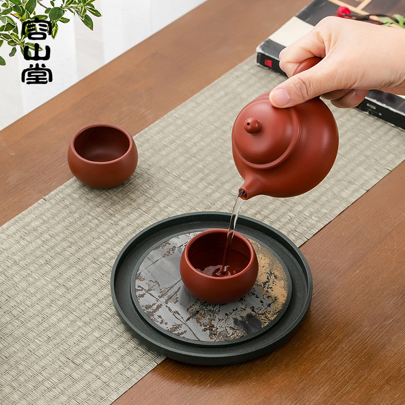 容山堂茗绣天然石茶盘家用小号干泡台储水小茶盘圆形壶承壶垫托盘