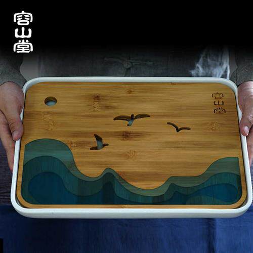 容山堂创意家用茶盘壶承功夫茶具茶席小托盘竹制储水式干泡台