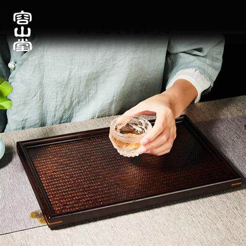 容山堂手工竹编重竹家用禅意小茶盘干泡台桌面茶具收纳托盘茶杯架