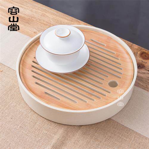 定制容山堂陶瓷干泡台茶盘圆形储水式家用功夫茶具茶道托盘简约小