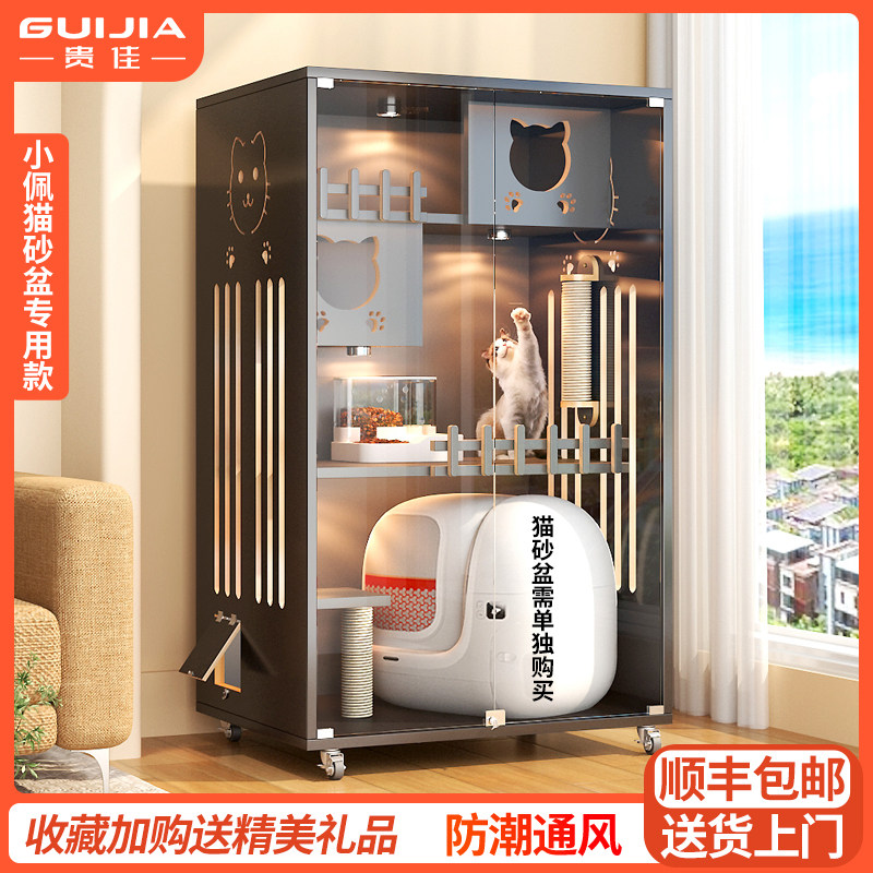 家用猫别墅可放自动猫砂盆猫窝猫笼子小佩超大猫咪房子双三层猫柜