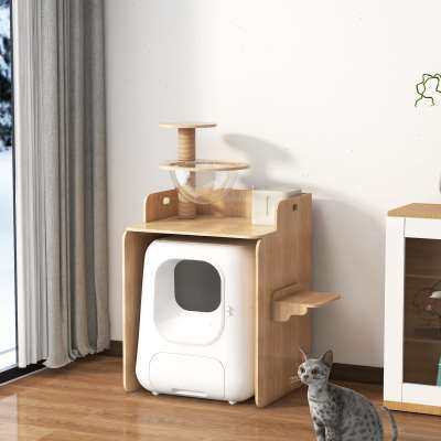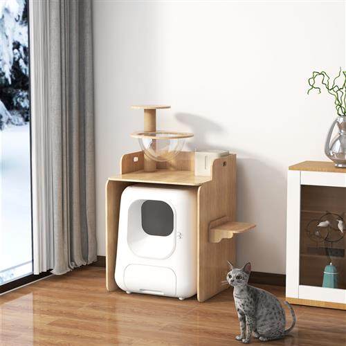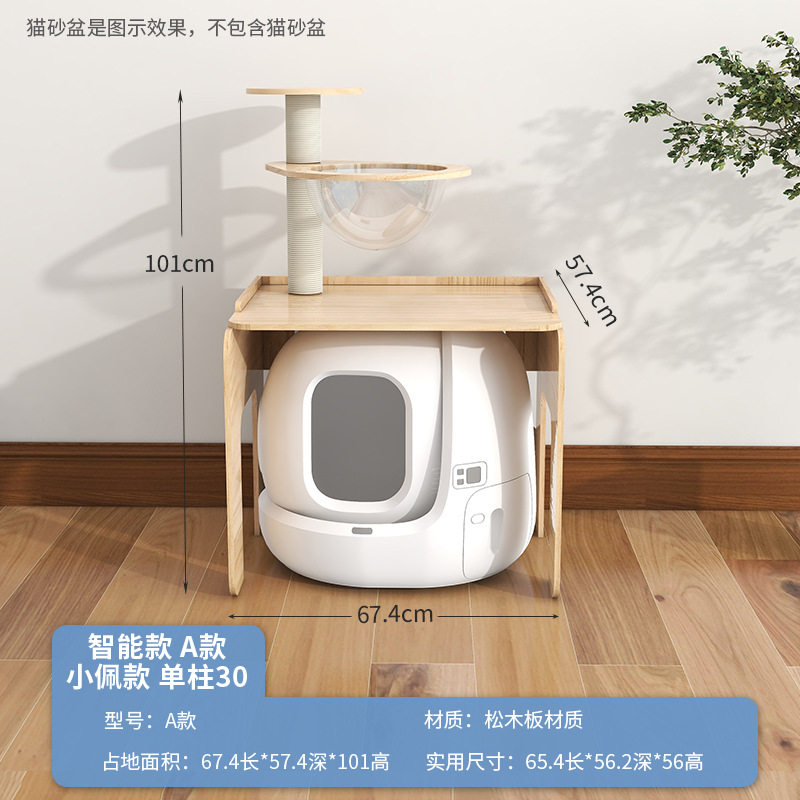 小佩自动猫砂盆置物架猫爬架有陪糯雪上方猫厕所实木猫砂盆一体柜