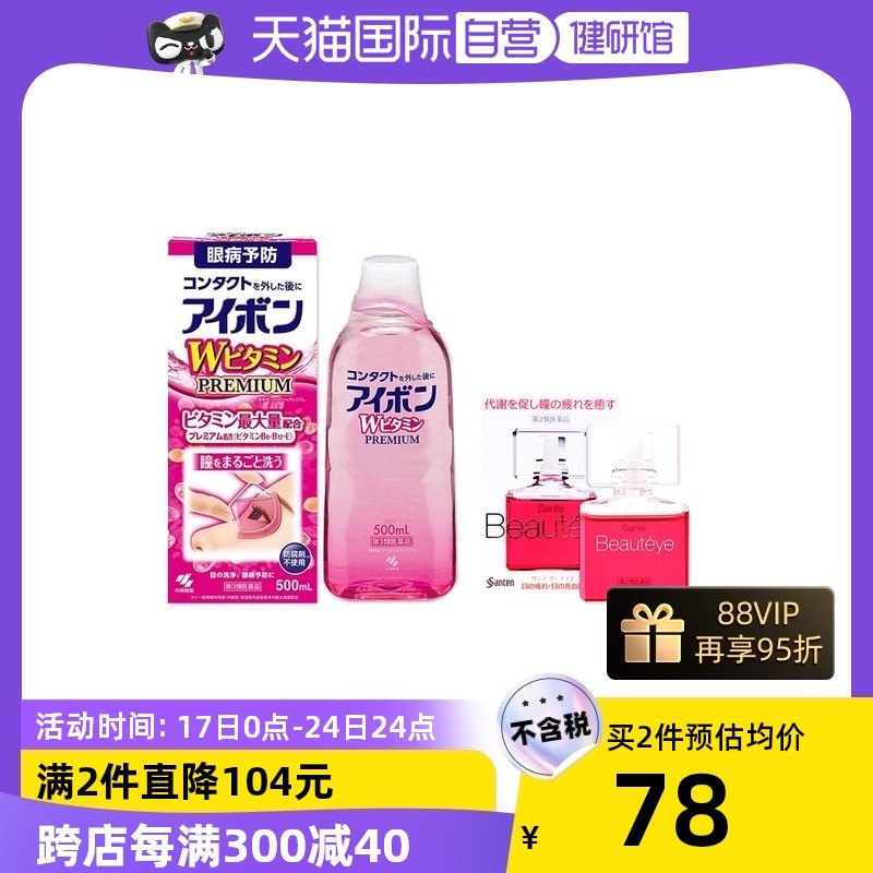日本小林制药进口洗眼液护眼滋润粉红500ml+参天玫瑰眼药水12ml