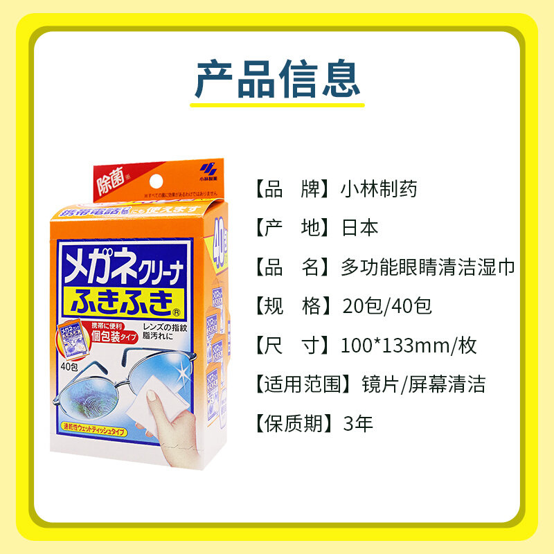 日本小林制药眼镜清洁湿巾一次性眼镜布擦镜头清洁手机屏幕防雾