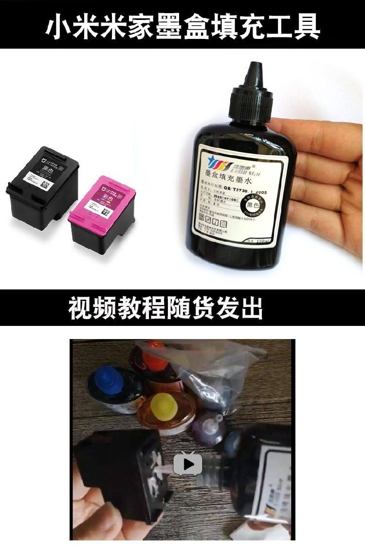 小米墨盒适用小米打印机米家打印MI喷墨打印一体机可加墨连喷家用办公学习作业扫描复印黑色彩色耗材替换墨盒