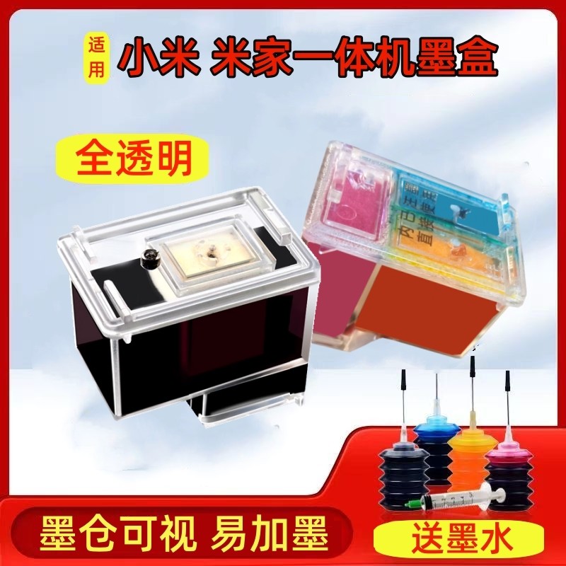适用小米墨盒打印机米家打印喷墨一体机连喷可加墨家用办公学习作业扫描复印黑色彩色替换耗材