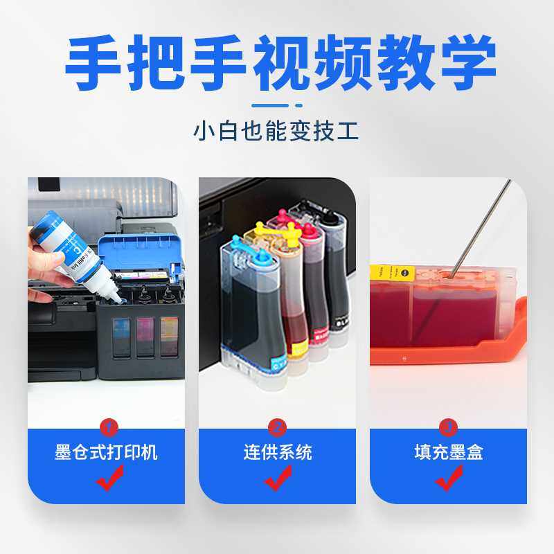适用惠普佳能爱普生小米连供喷墨打印机黑彩通用30ML墨水易加墨