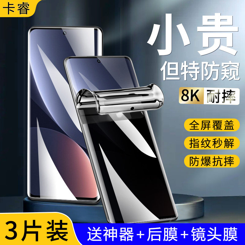 适用小米14钢化水凝膜13pro手机膜12spro防窥膜11ultra陶瓷10s全屏civi3软膜2专用1s全胶12x无黑边mix4曲屏10