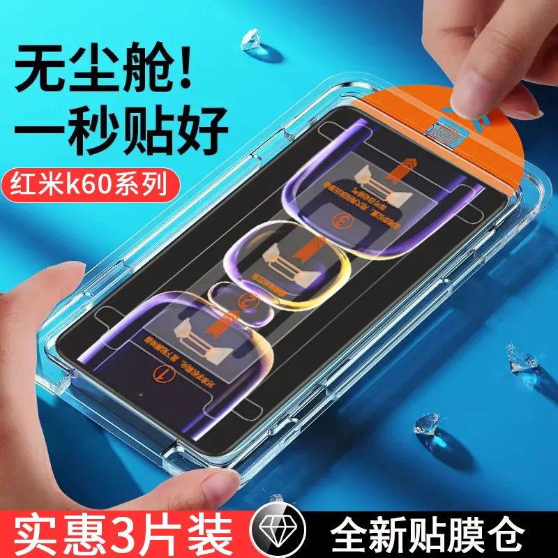 适用红米k60至尊版钢化膜k60k50k40k30k20无尘仓秒贴小米13/note12turbo自动贴膜note9/10/11/12全屏9x手机膜