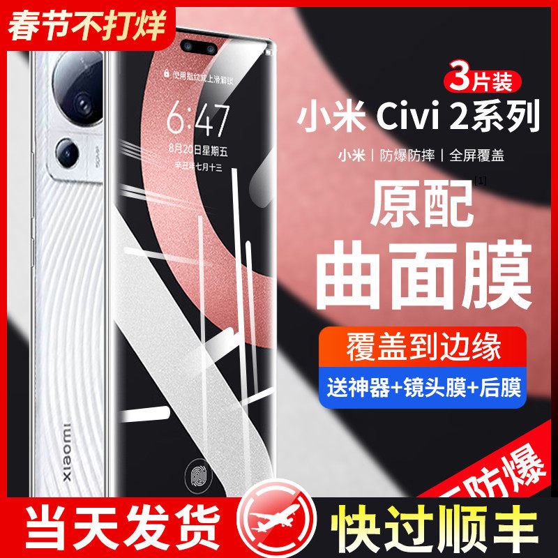 适用小米civi2钢化膜civi1s手机膜cv保护mi曲面原装曲屏新款贴膜xiaomicivi全屏二代全包水凝xiaomi防窥防爆