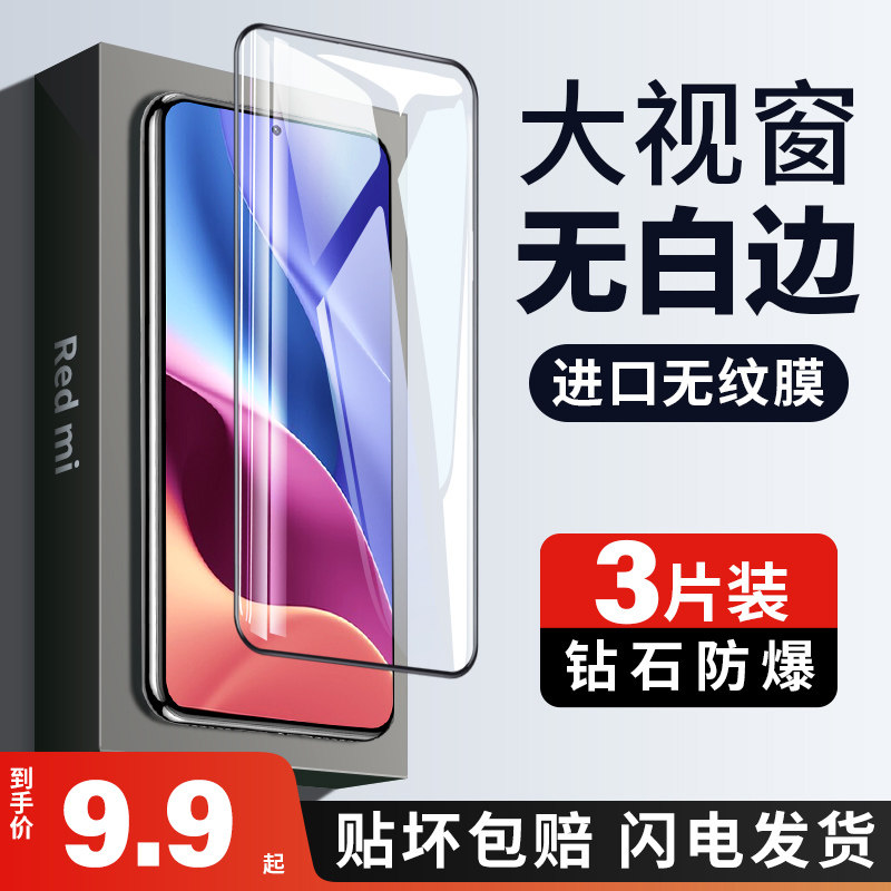 适用红米note9pro钢化膜note9全屏覆盖noto9防摔nont小米redmi note9抗蓝光n0te手机4g钻石5g玻璃刚化前贴膜