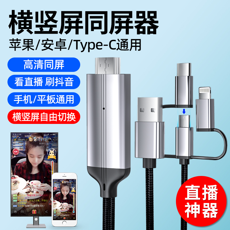 有线同屏器抖音直播横竖屏手机投屏器连电视机电脑显示器投影仪转换器适用于苹果安卓华为小米通用HDMI连接线