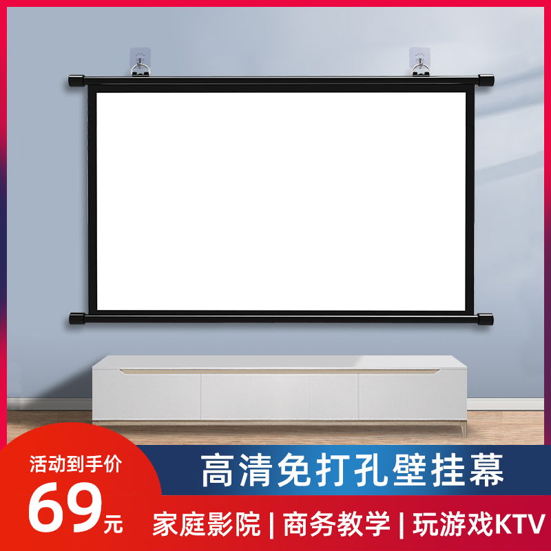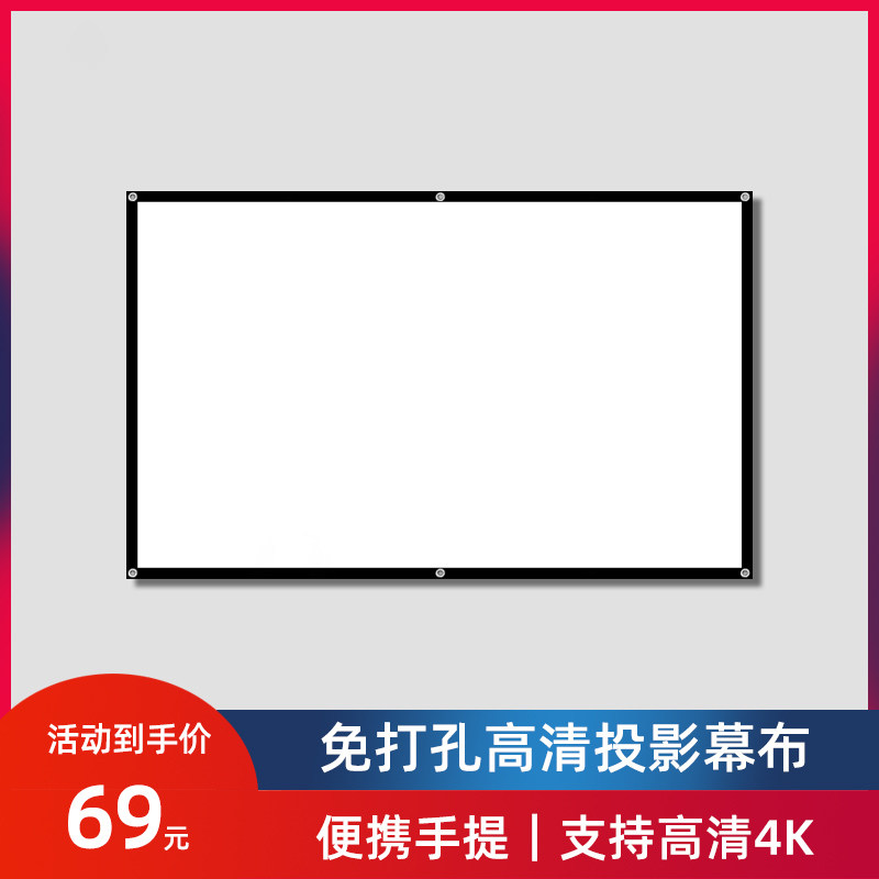 投影仪幕布便携式免打孔简易壁挂高清4K3D办公卧室家用软幕布抗光