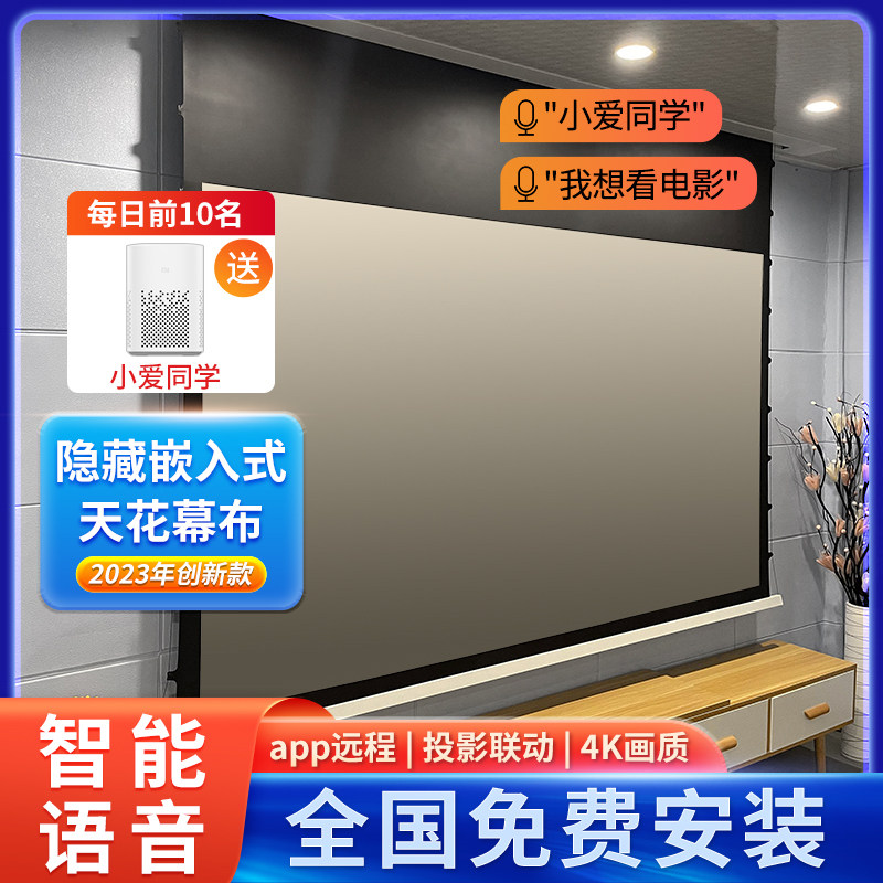 嵌入式隐藏天花幕布适用小米智能投影幕布极米家用4K电动升降抗光