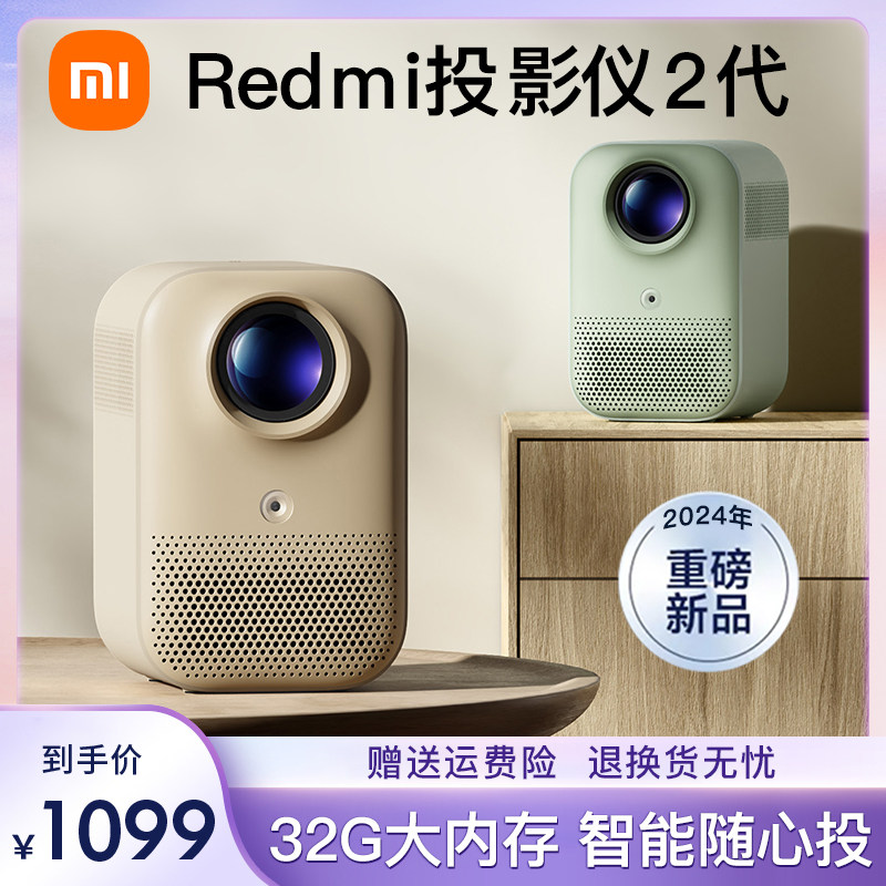 小米红米Redmi投影仪2代2024新款家用智能影院高清1080P卧室客厅投墙学生宿舍小型便携办公会议用海外投影机