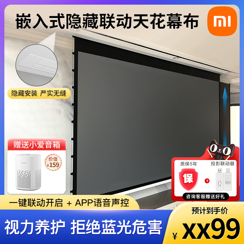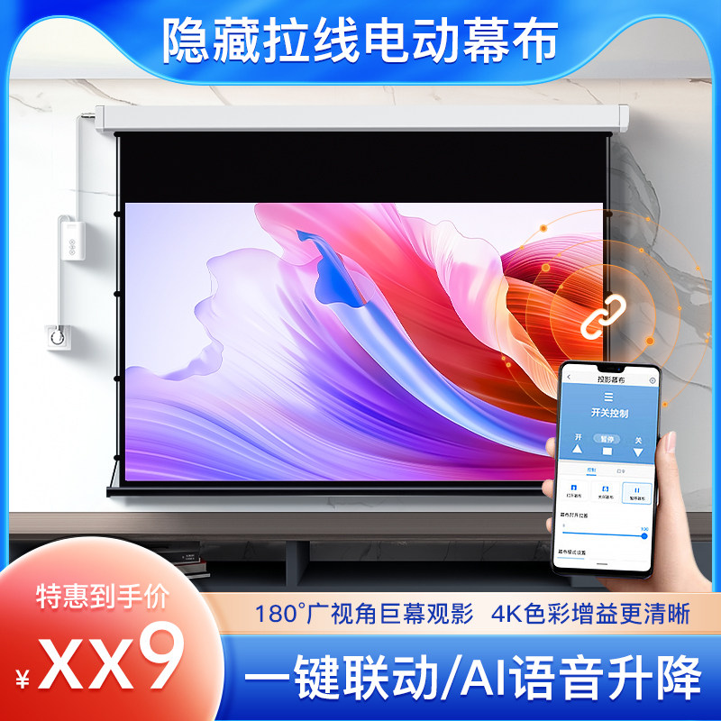 小米投影仪电动幕布100寸家用4K高清嵌入式投影布米家智能遥控自动升降投影屏卧室120寸金属抗光布幕极米坚果