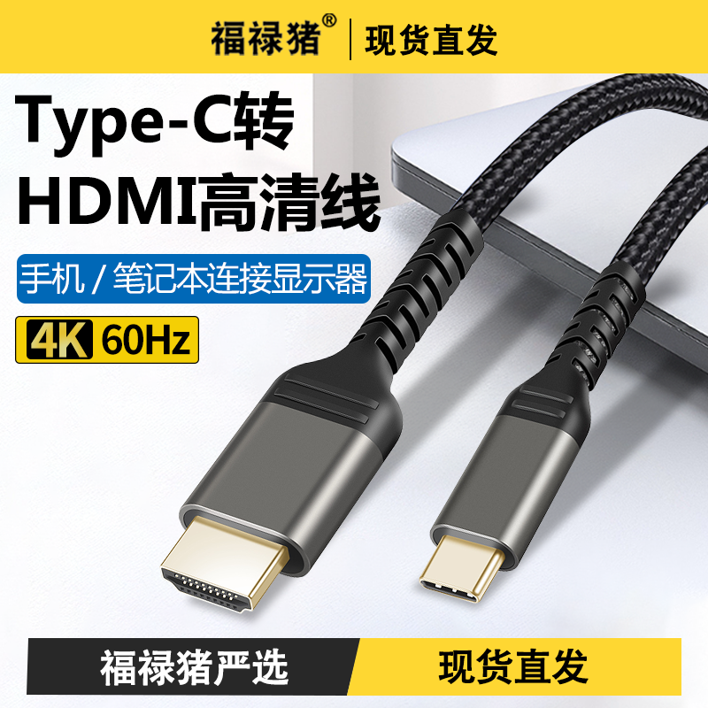 type-c转hdmi手机连接电脑电视同屏转换连接线适用华为小米笔记本ipad平板外接显示器投影仪4K高清数据投屏线