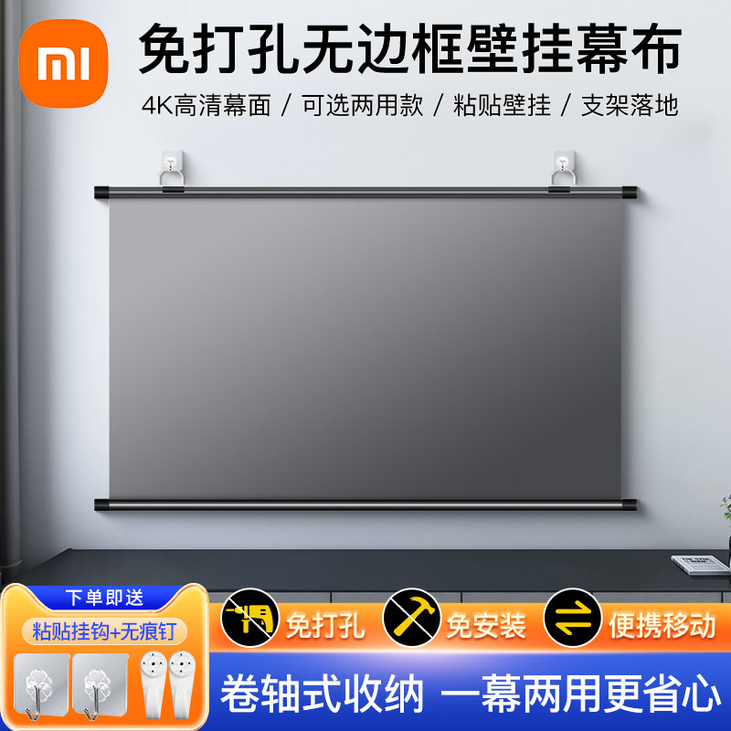 4K高清壁挂幕布投影挂钩免打孔家用投影仪卧室客厅适用小米极米