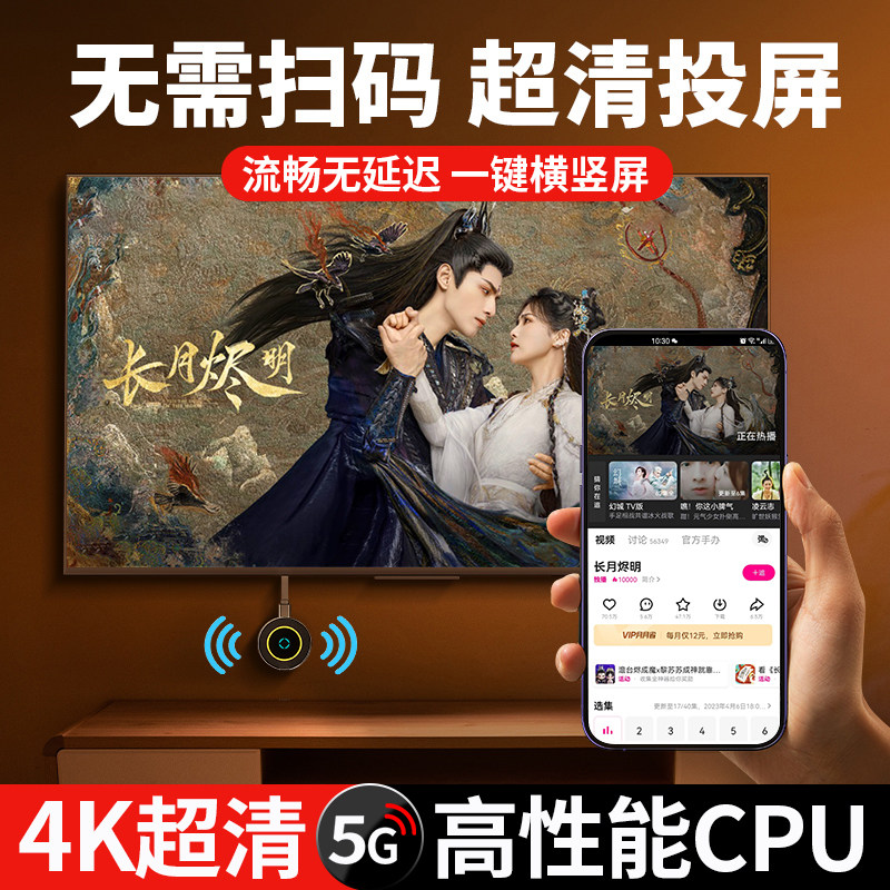 无线投屏器高清4K手机同屏器连接电视机家用笔记本同步投影仪投墙电脑显示器适用于苹果华为小米安卓投屏神器