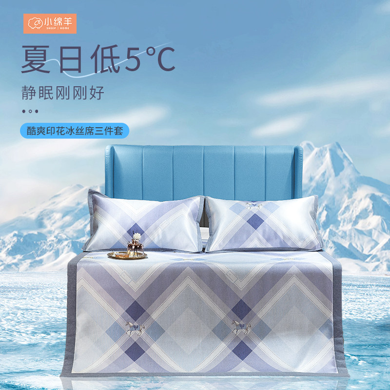 小绵羊家纺冰丝凉席三件套可折叠软席空调席单双人凉感酷爽印花冰