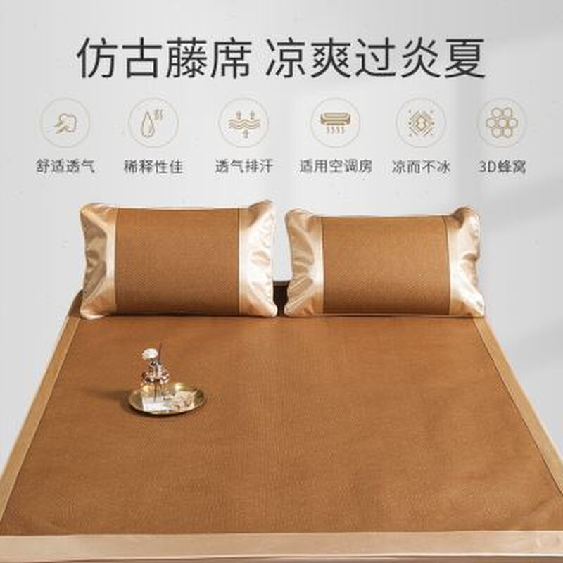 小绵羊轻奢仿麻藤席夏凉席藤席三件套1.5m仿麻席可折叠1.8米席子
