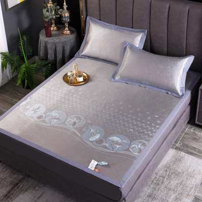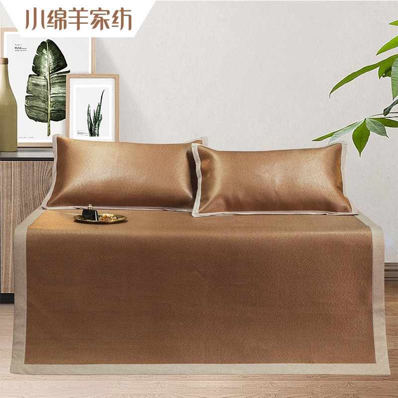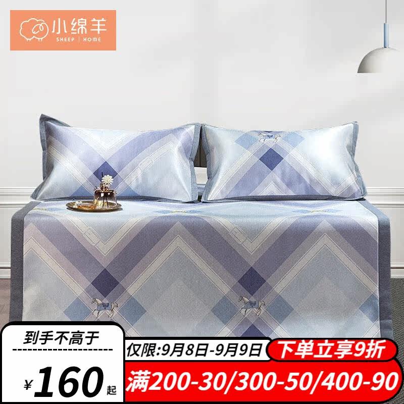 小绵羊凉席套件酷爽提花冰丝席三件套夏季可折叠水洗空调床单席子